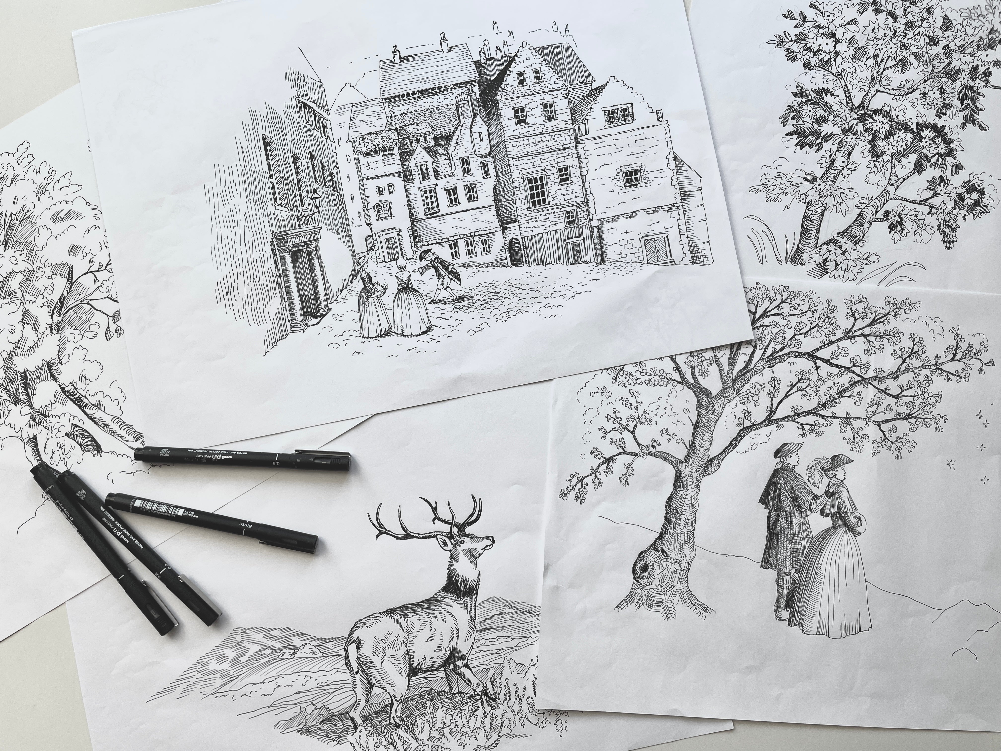 Das Seidentuch erzählt eine Liebesgeschichte aus dem 18. Jahrhundert: ein zufälliges Treffen auf einem Stadtplatz, ein spielerisches Picknick auf einer blühenden Wiese und Träume unter dem Sternenhimmel von einer gemeinsamen Zukunft. Bärbels Inspiration stammt von ihrer Reise nach Schottland - von malerischen Kopfsteinpflastergassen von Edinburgh und der Schönheit von Loch Lomond. Die Geschichte und die Inspiration hinter diesem Muster verleihen dem neuen Prinz Berlin Seidenschal eine tiefere Bedeutung. Er ist mehr als nur ein Accessoire – er ist ein Kunstwerk und eine zeitlose Erzählung von Liebe und Schönheit.
