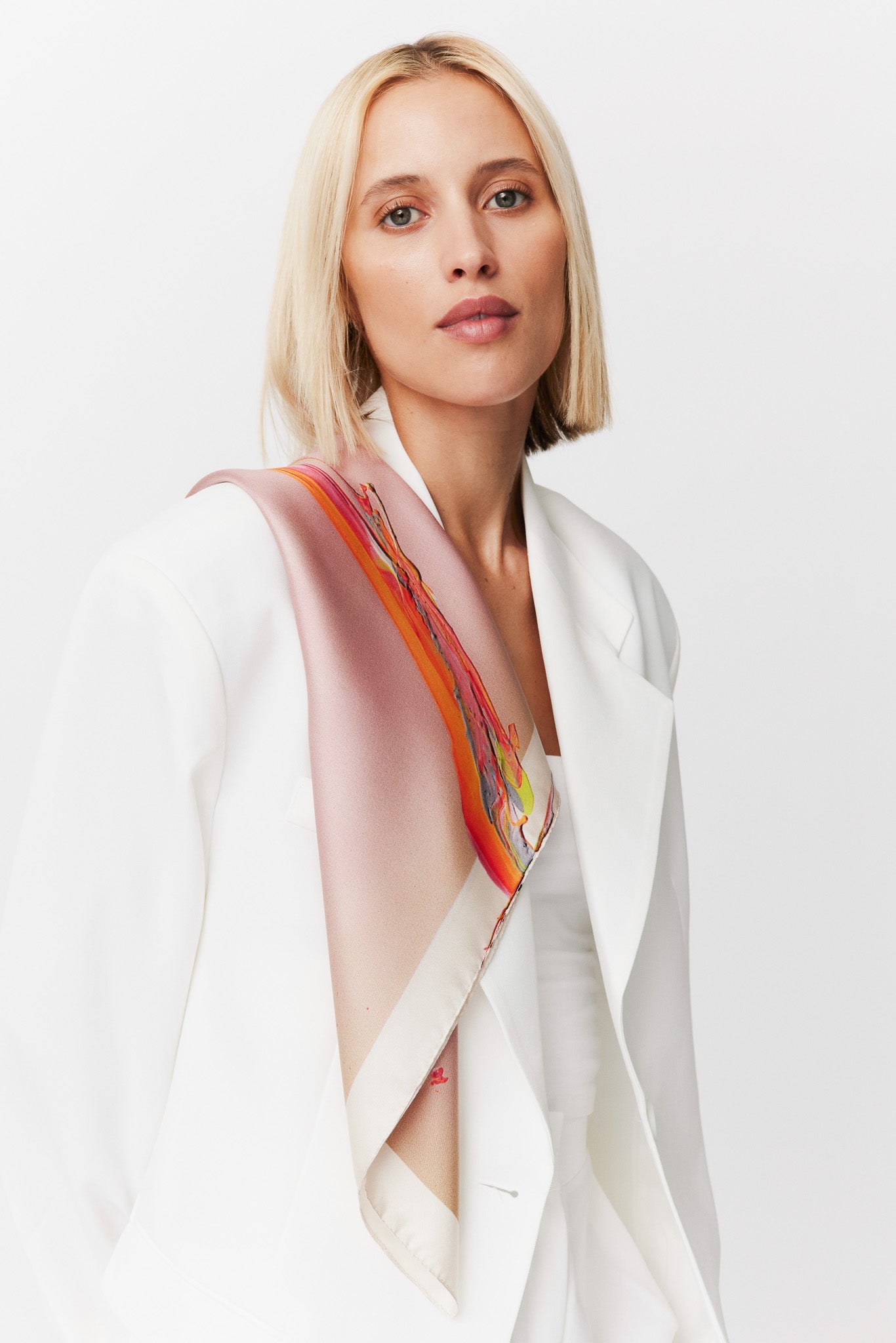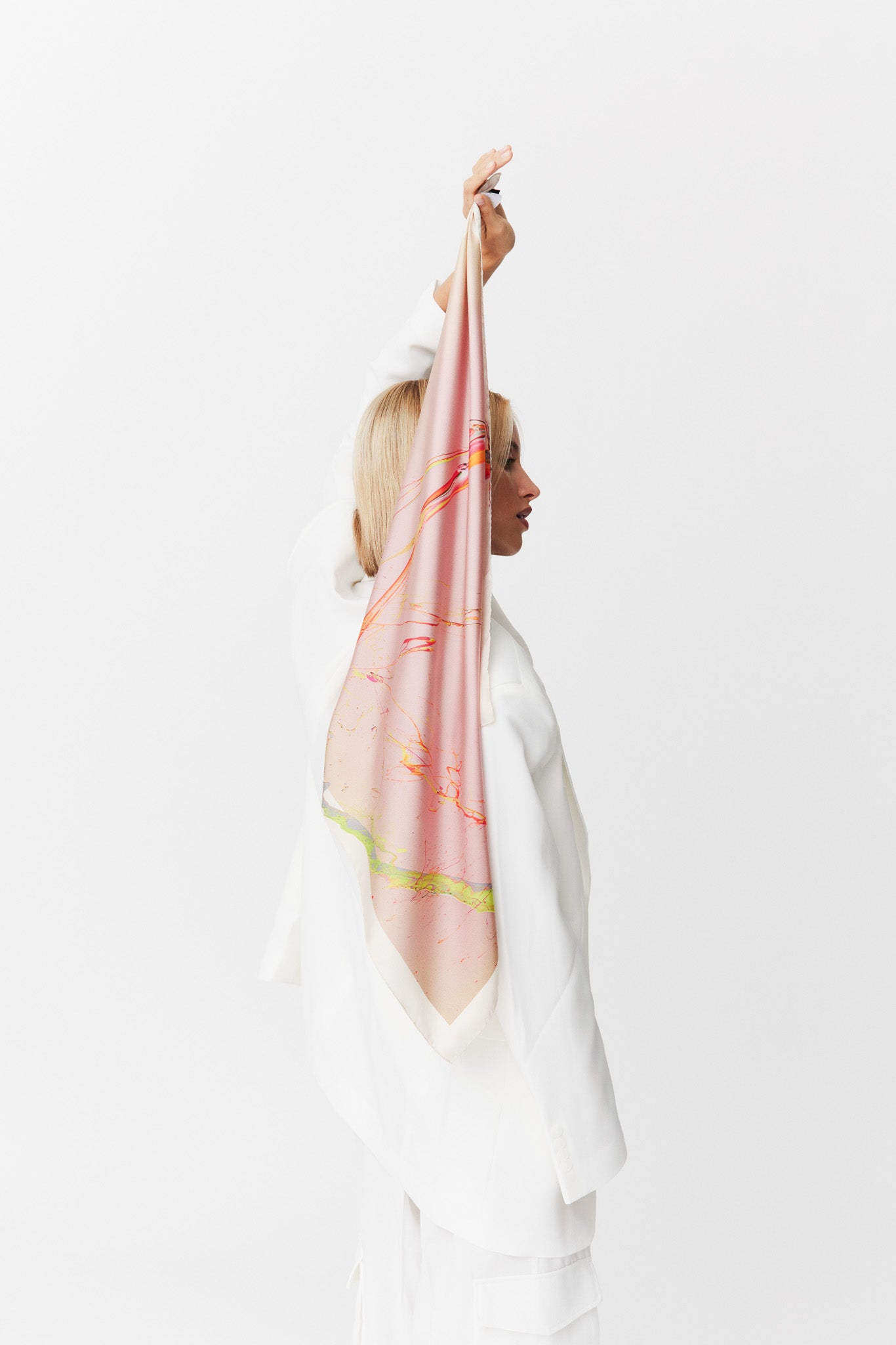 Discover the first-ever collaboration between Prinz Berlin and Berlin-based artist Cevin Parker. The Silky Dreamssilk scarf by Cevin Parker invites you into the dream world of the artist. Delicate pink tones and bold color accents give the design a unique elegance and individuality. This scarf is more than just an accessory; it blends artistic expression with aesthetic style at the highest level. The collaboration aims to seamlessly merge art and fashion, turning every outfit into a timeless work of art.
