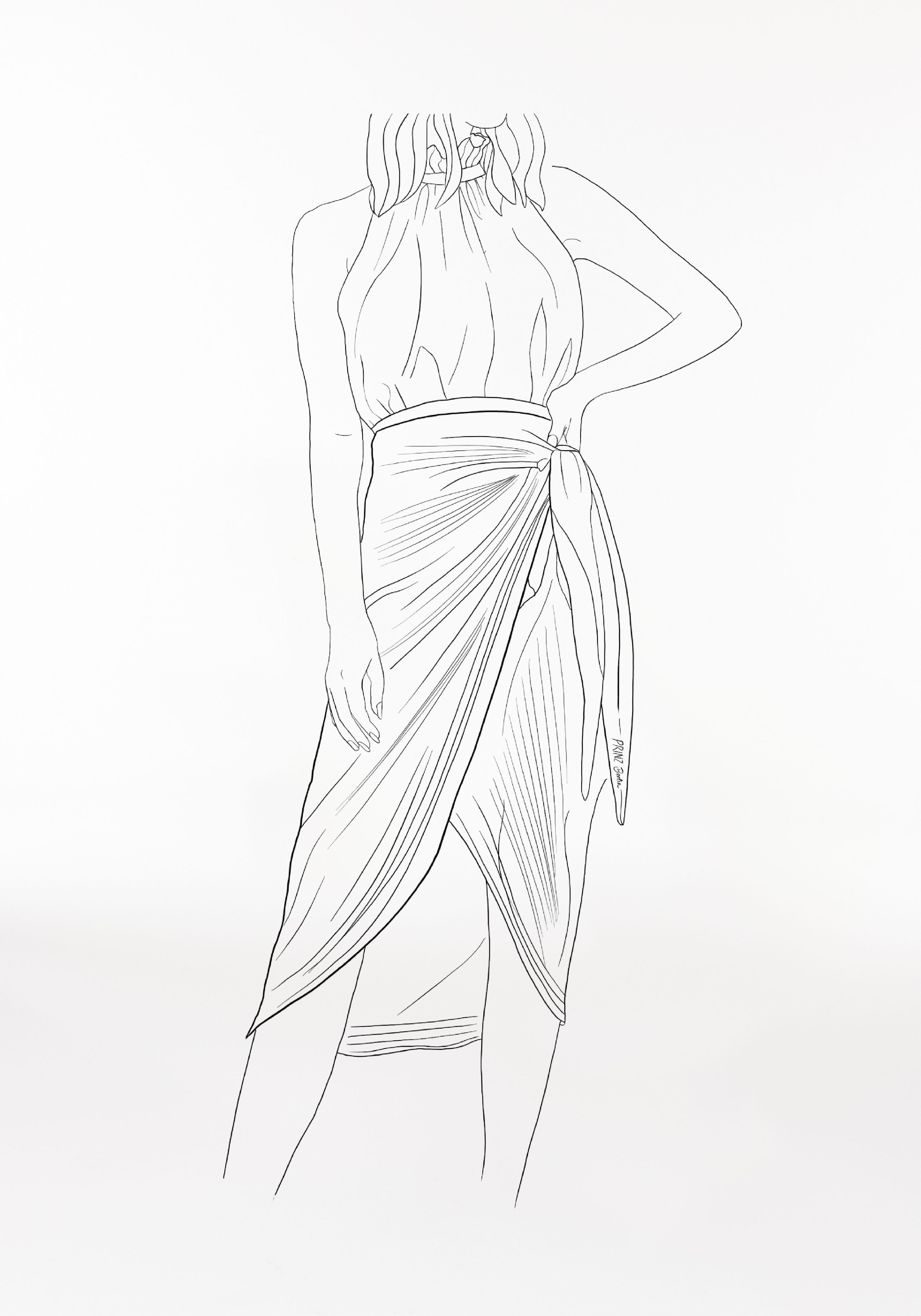 - Now, wrap the adjacent side around your waist so that the two ends of the silk scarf come back together at the front.