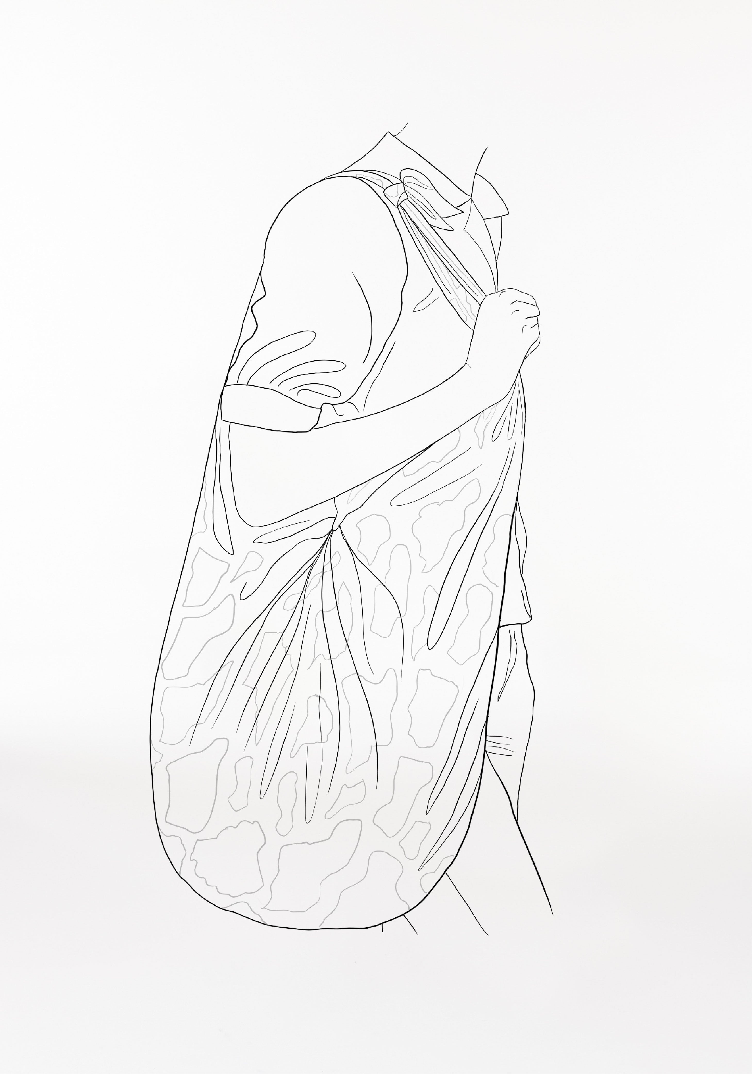 - Take the two knotted ends and drape them over your shoulder, creating a basic shape of the handbag.