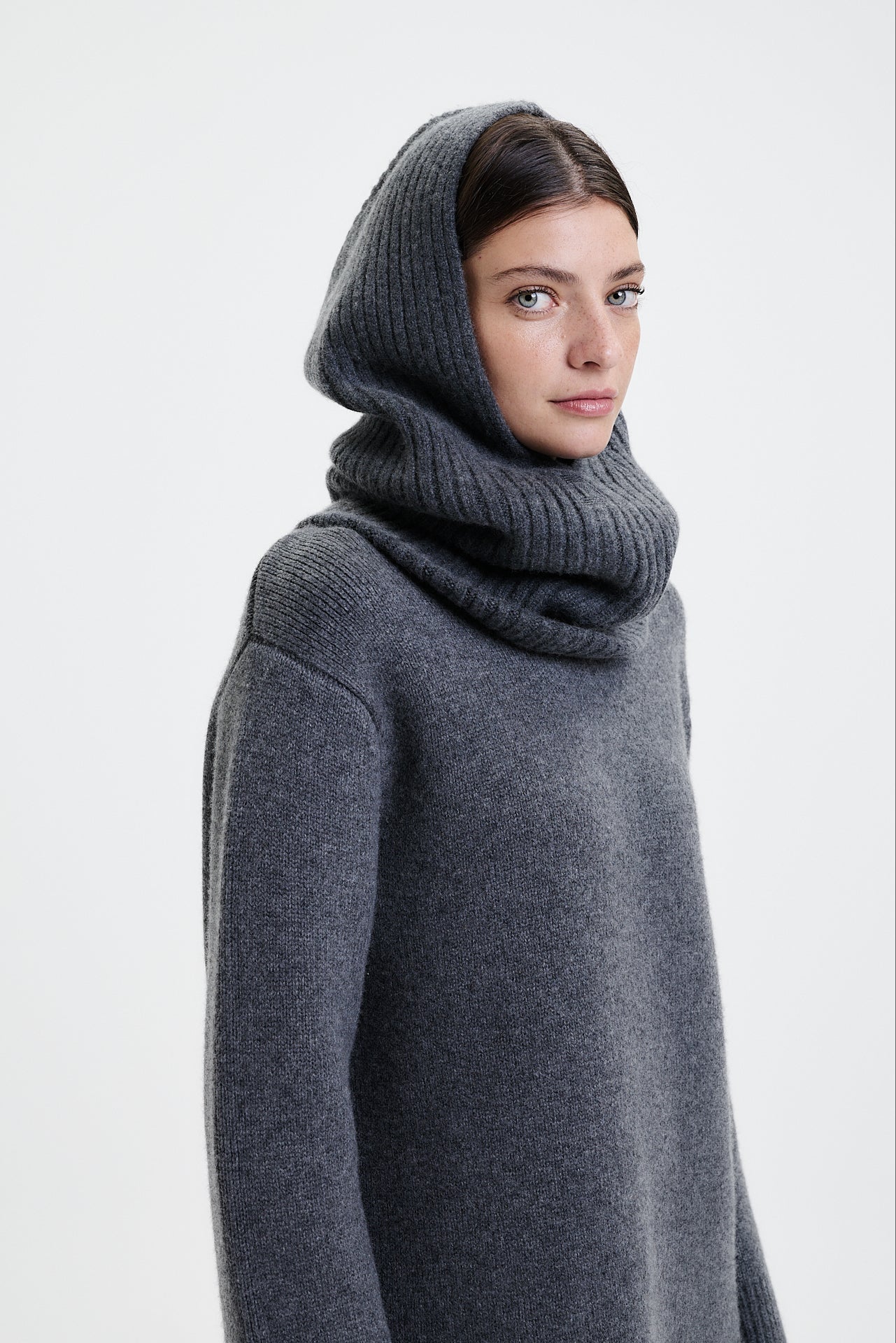 Cashmere Rib Hood Graphite